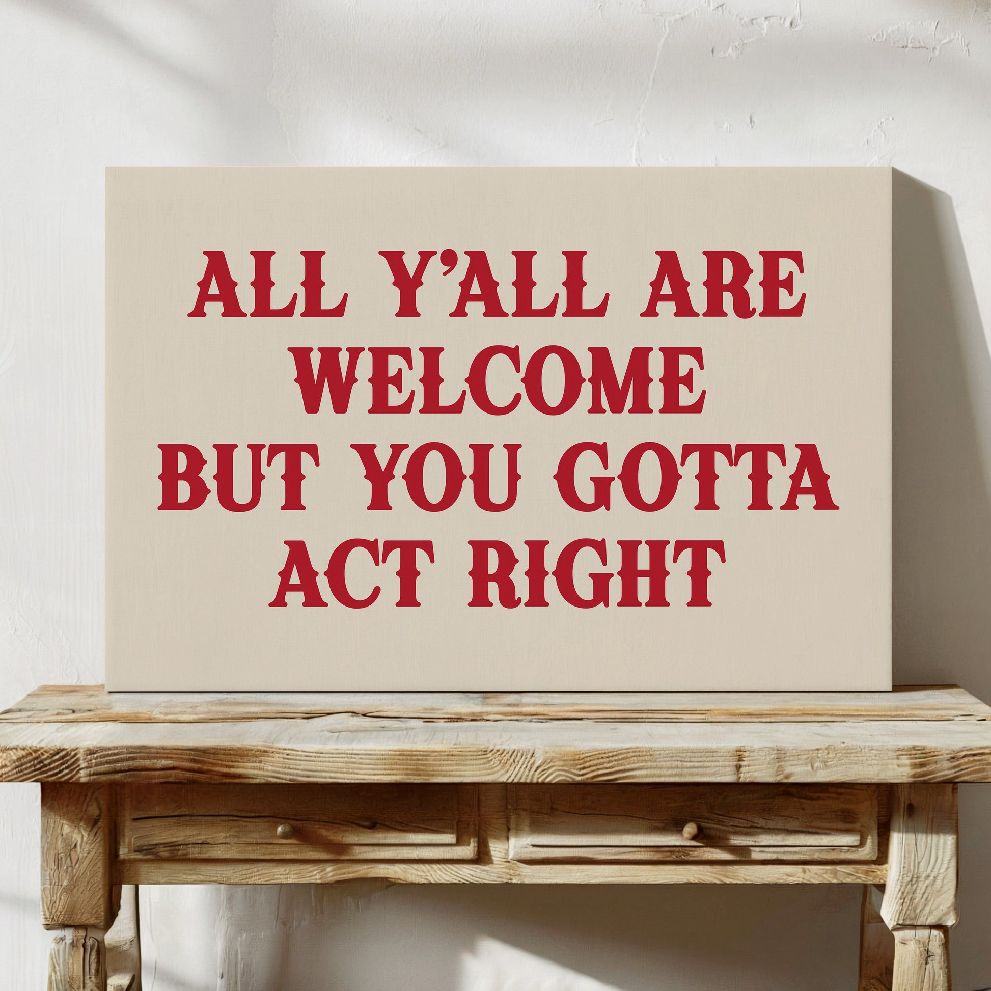 Southern charm meets sass in this bold red typography print. The perfect welcome sign with a little attitude.