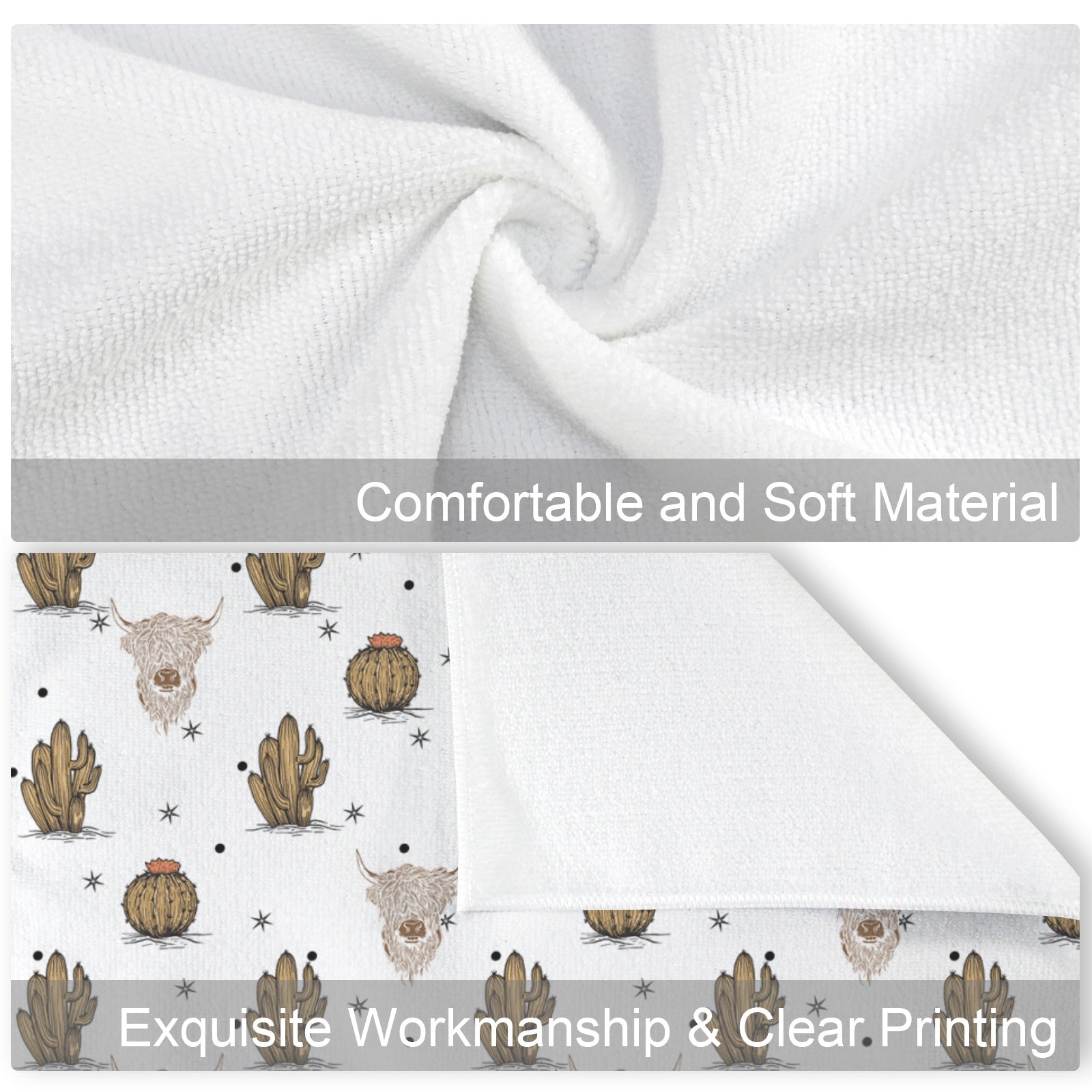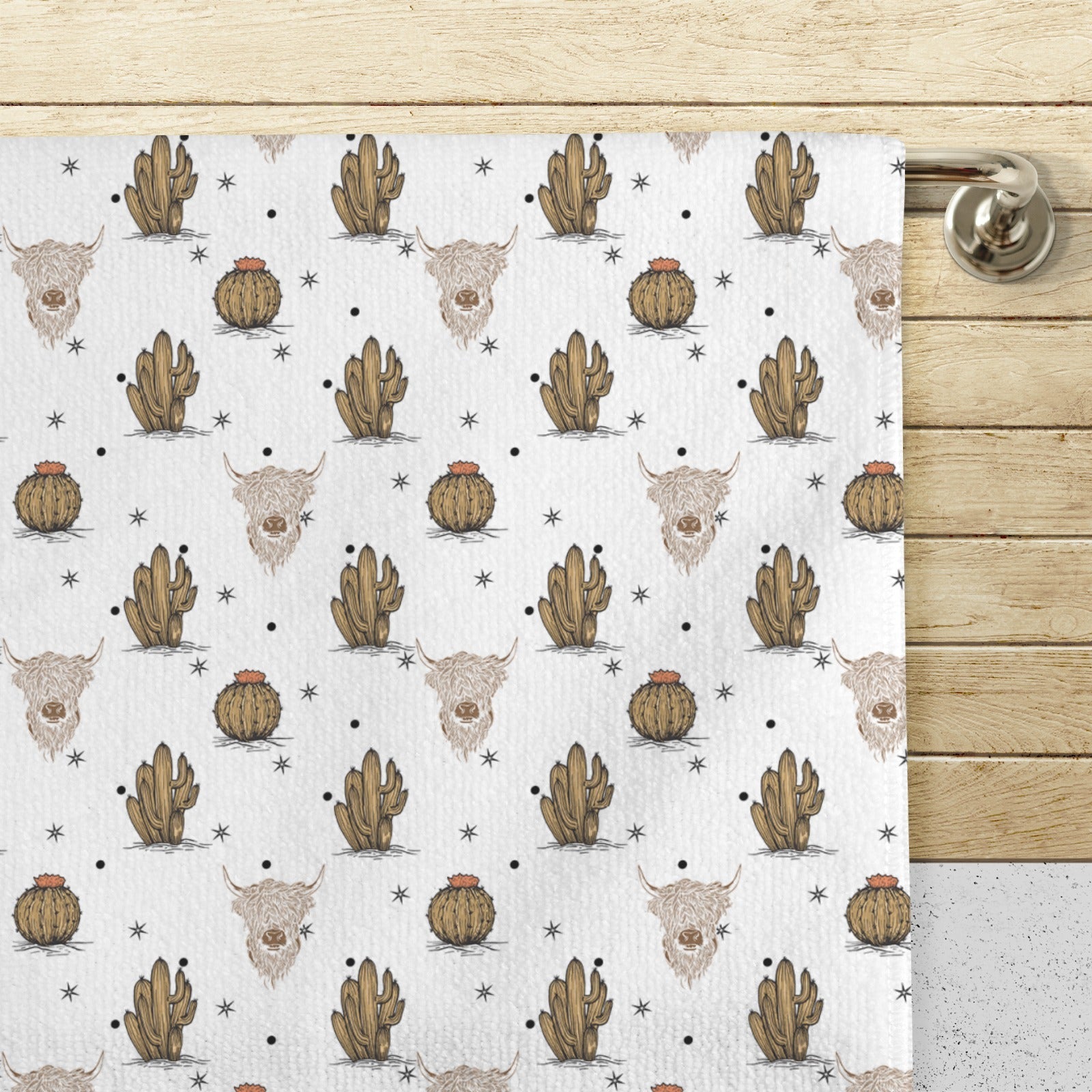 Bring rustic charm to your kitchen with our adorable Highland cow-themed dish towels. This charming set of four features the beloved Highland cattle that embody the spirit of the American West. Crafted right here in America, these soft, absorbent towels blend practicality with personality—perfect for drying dishes, wiping counters, or adding a touch of whimsy to your kitchen décor. Whether you're a ranching enthusiast or simply love the cozy appeal of Highland cows, these towels make everyday tasks more delightful while supporting American-made quality.