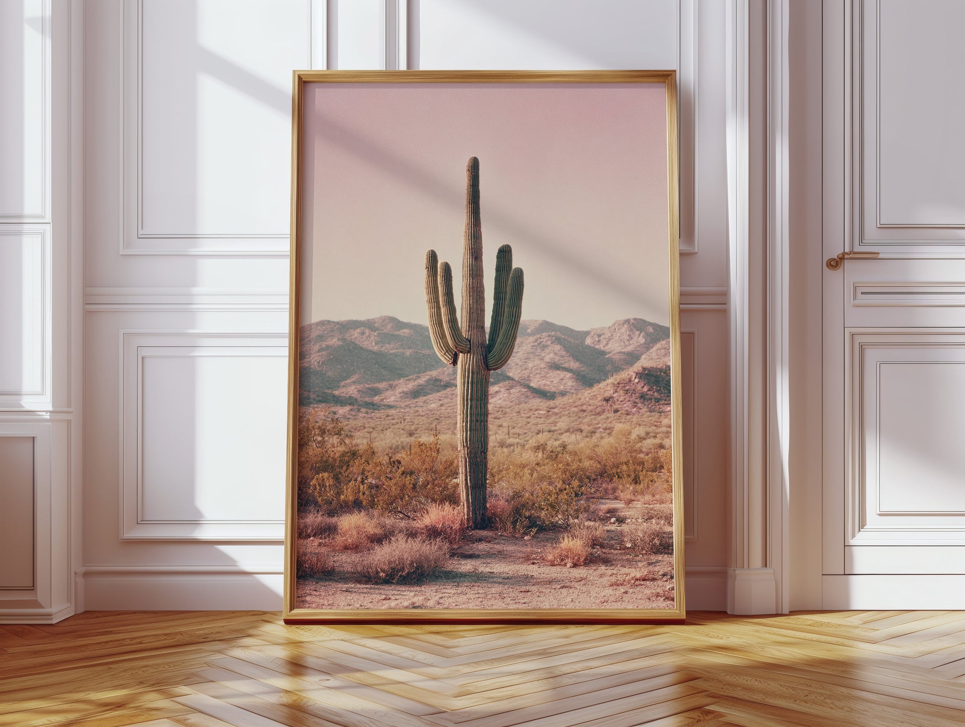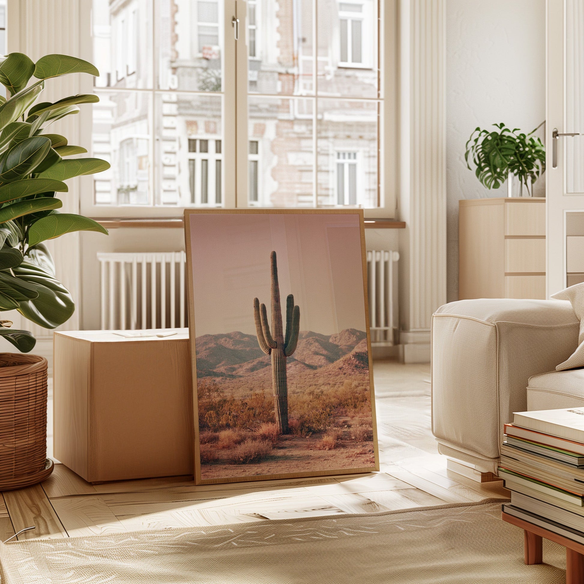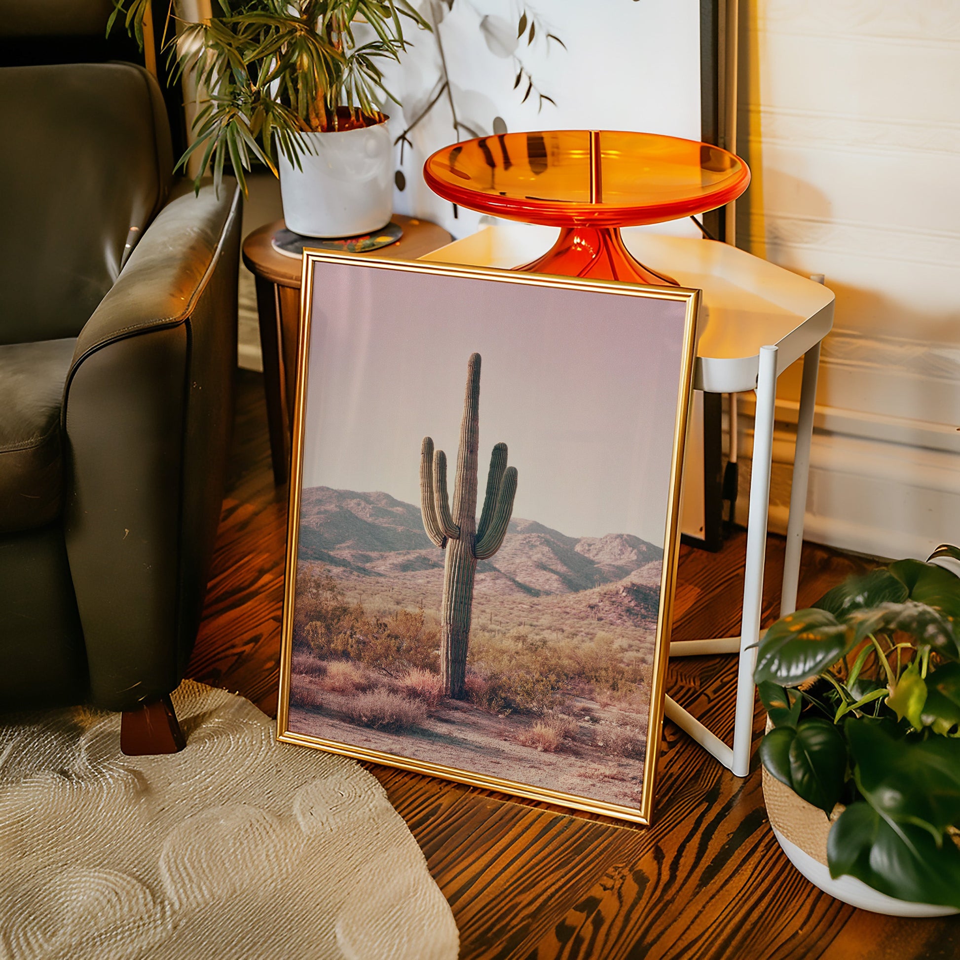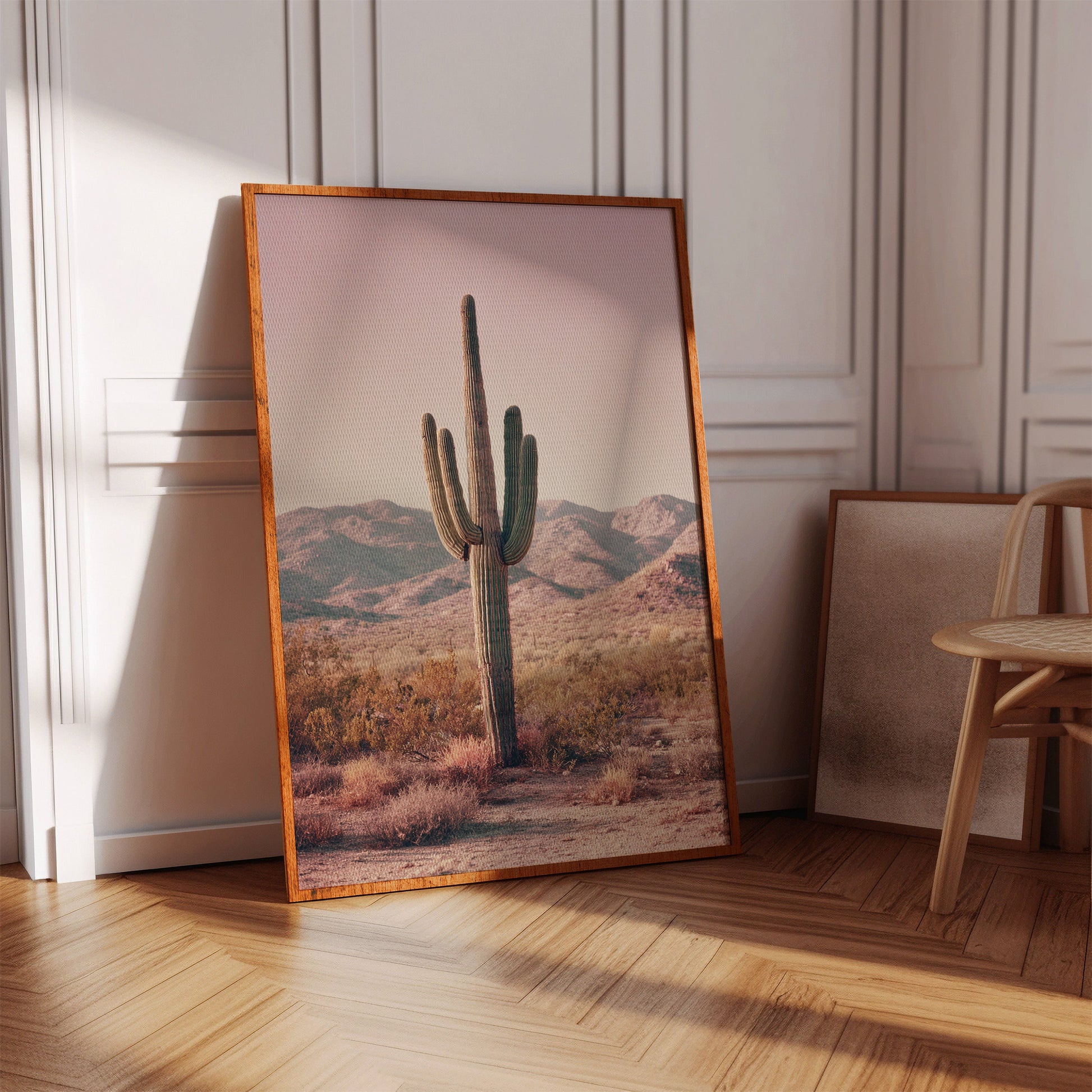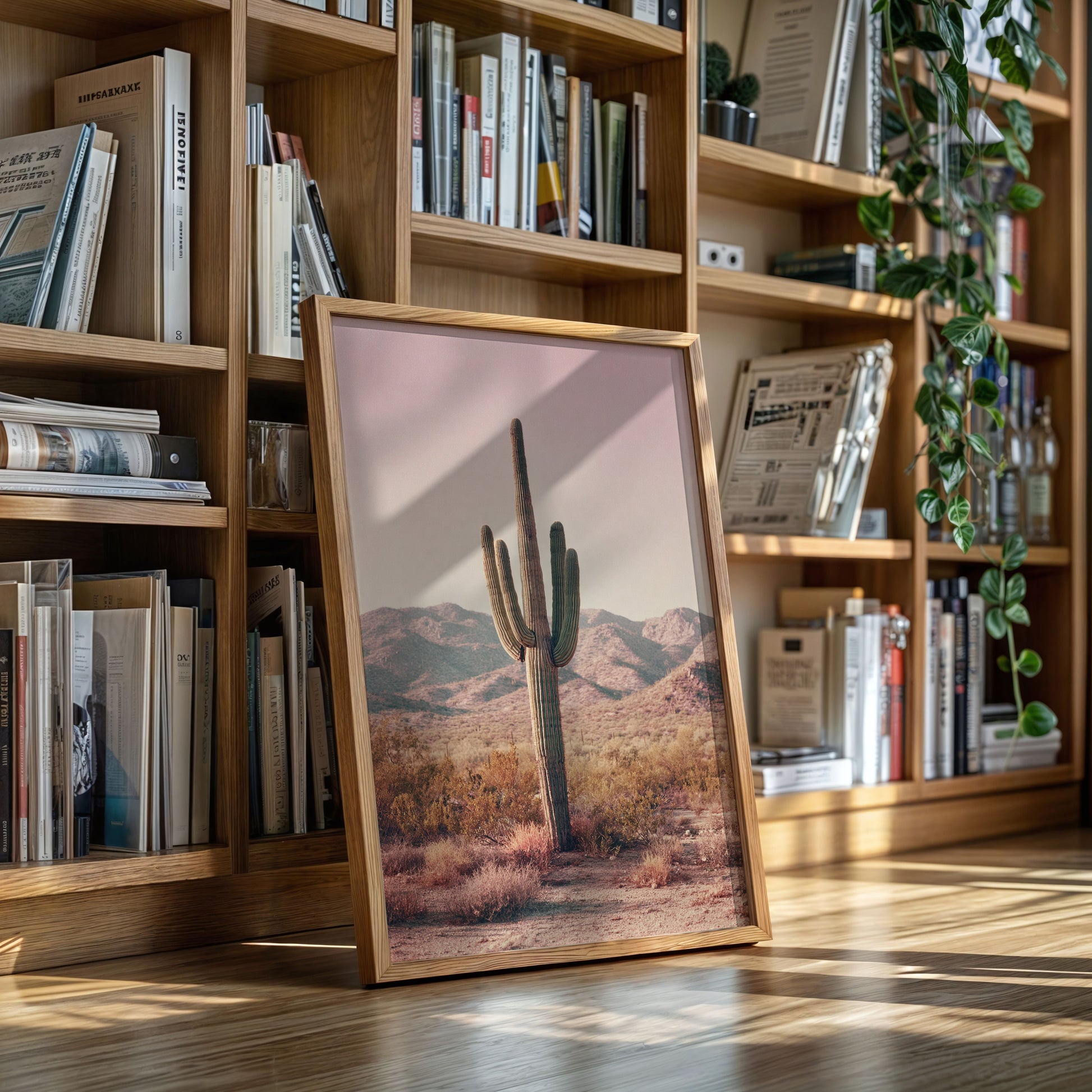 In the heart of the arid desert, where the sun casts a golden glow, the majestic cactus stands tall, a symbol of resilience and timeless beauty. This canvas captures a moment of serene solitude, inviting you to pause and reflect.