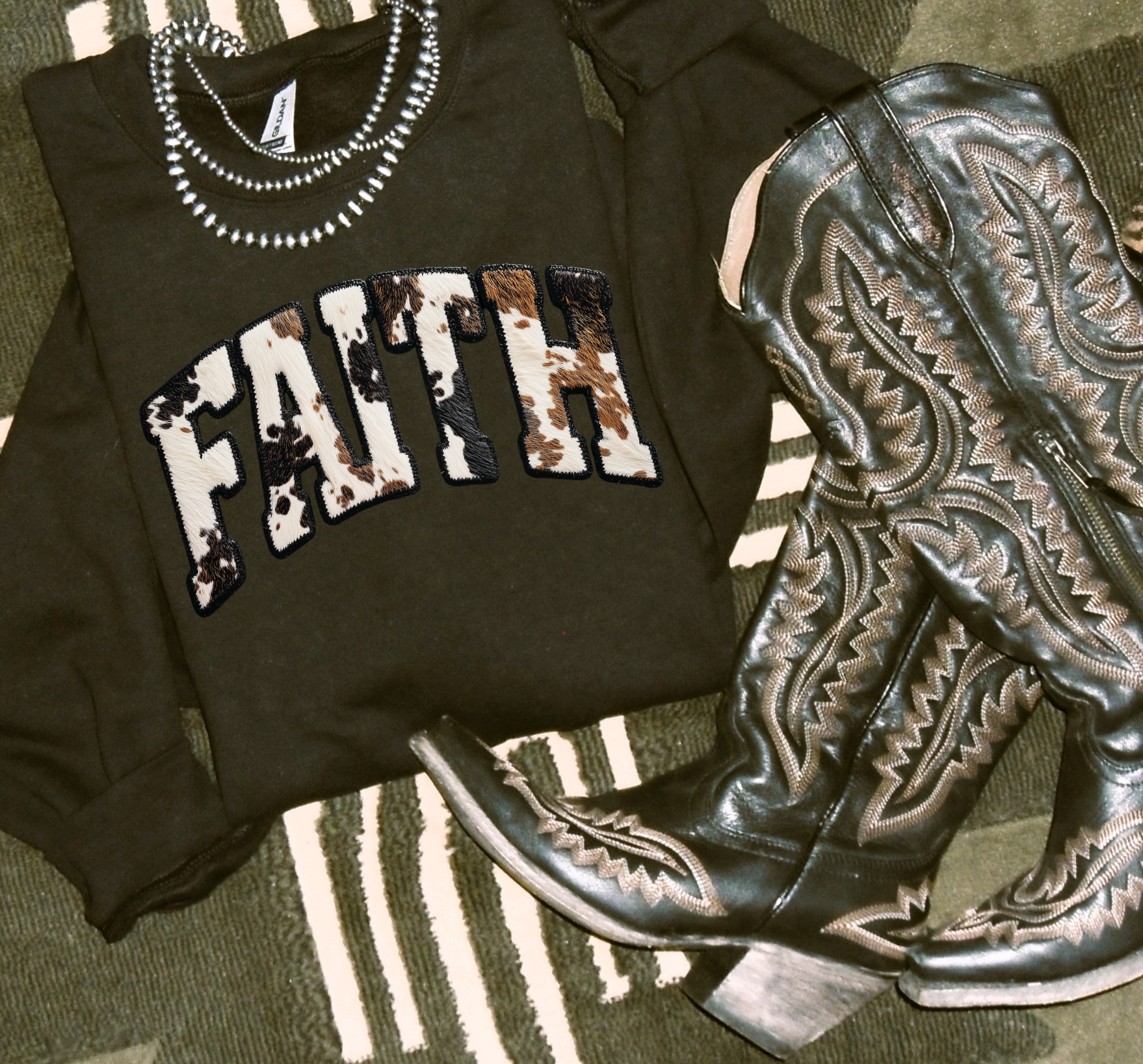 Faith Black Cowprint Crewneck