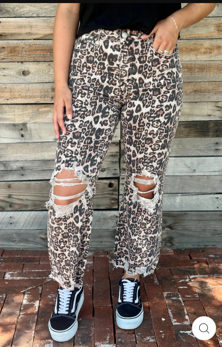 These Hear Me Roar Jeans bring a wild twist to your wardrobe with their faded cheetah print and edgy distressed holes at the knees. The raw hem hits right at the ankle, perfect for showing off your favorite shoes while keeping things effortlessly cool and playful.
