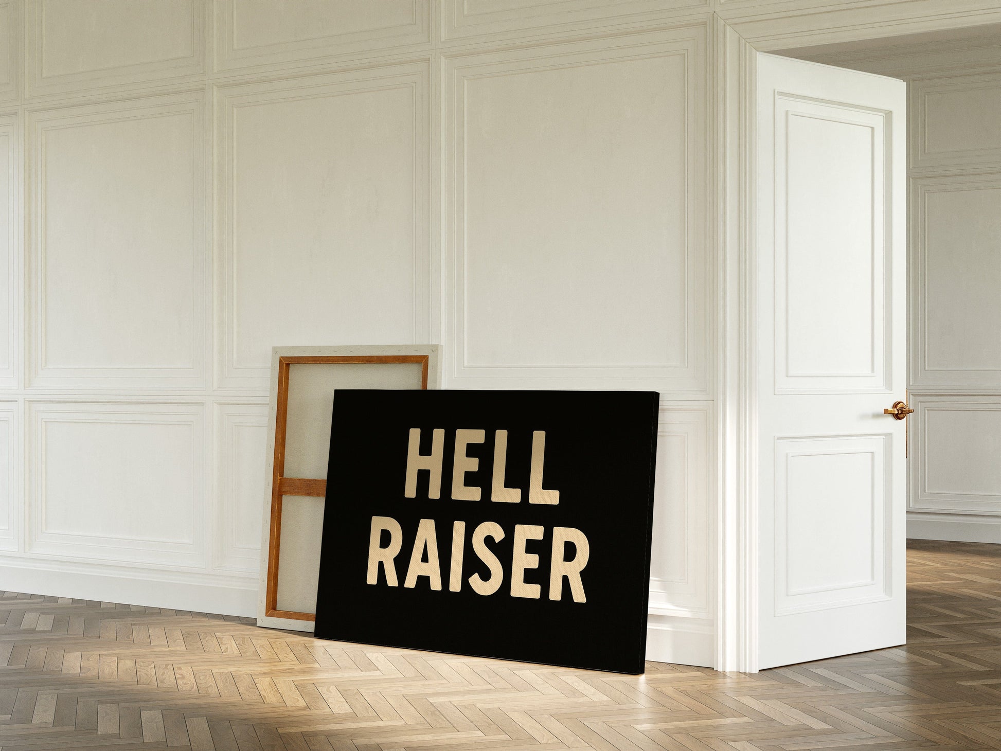 Raise a little hell with this fearless typographic statement. Hell Raiser is a no-apologies piece of wall art featuring strong cream lettering on a deep black backdrop. Perfect for those who live with grit, guts, and a touch of rebellion. Whether it’s hung in a rustic saloon-style den or a modern loft, this print lets everyone know you don’t back down.