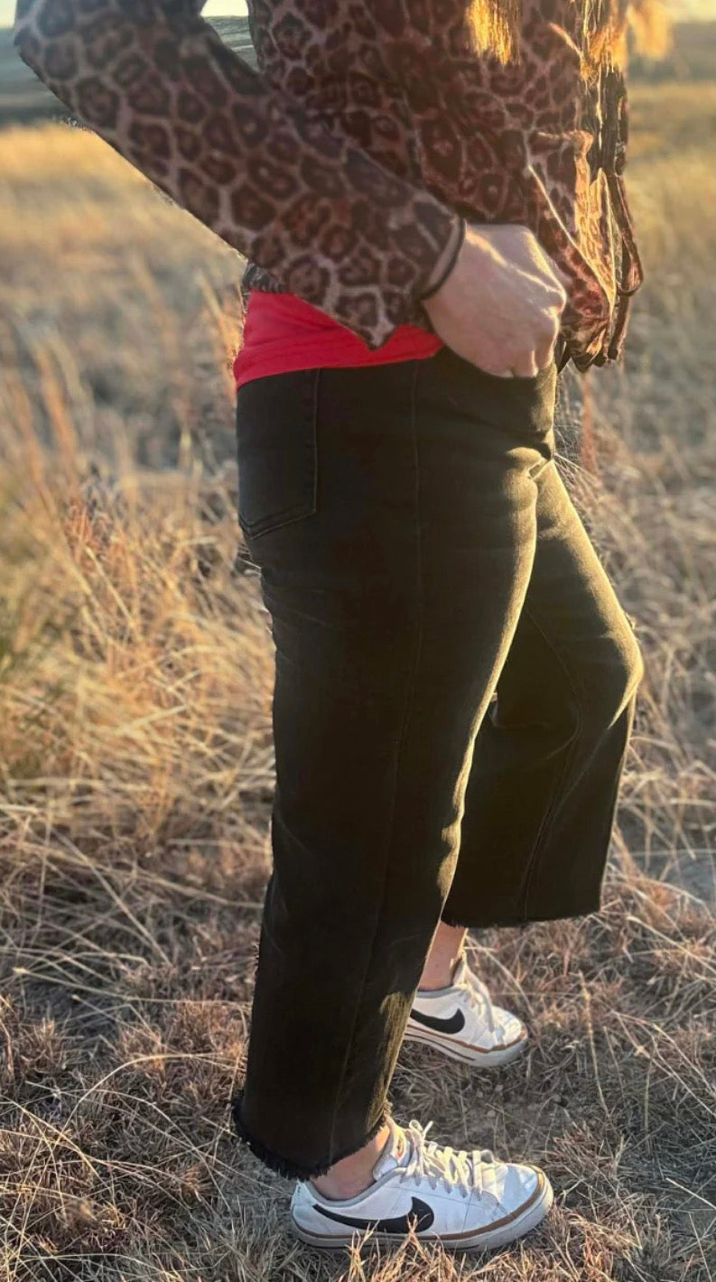 Discover the bold edge of style with the Night Sky Jeans, featuring black denim and trendy distressing at the bottoms for an effortlessly cool look. These jeans offer a flattering fit and versatile design that transitions seamlessly from day to night. Elevate your wardrobe with a pair that combines modern flair and comfort—perfect for making a confident statement wherever you go.
