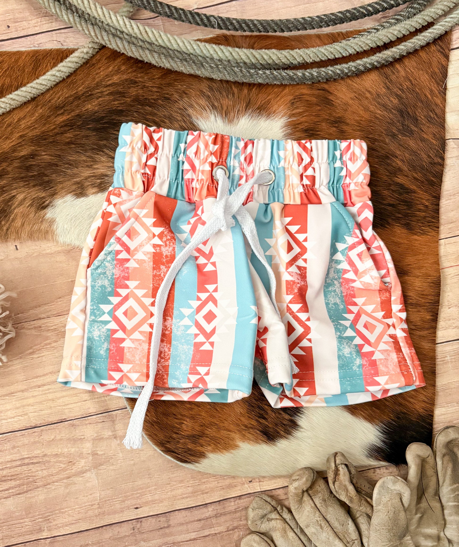 Experience the ultimate in style with our Swimming Trunks! These trunks feature convenient pockets and a working drawstring. And with sizes available for infants through youth, you can match all the adorable cowboys in your life. Get ready to make a splash with these amazing trunks!