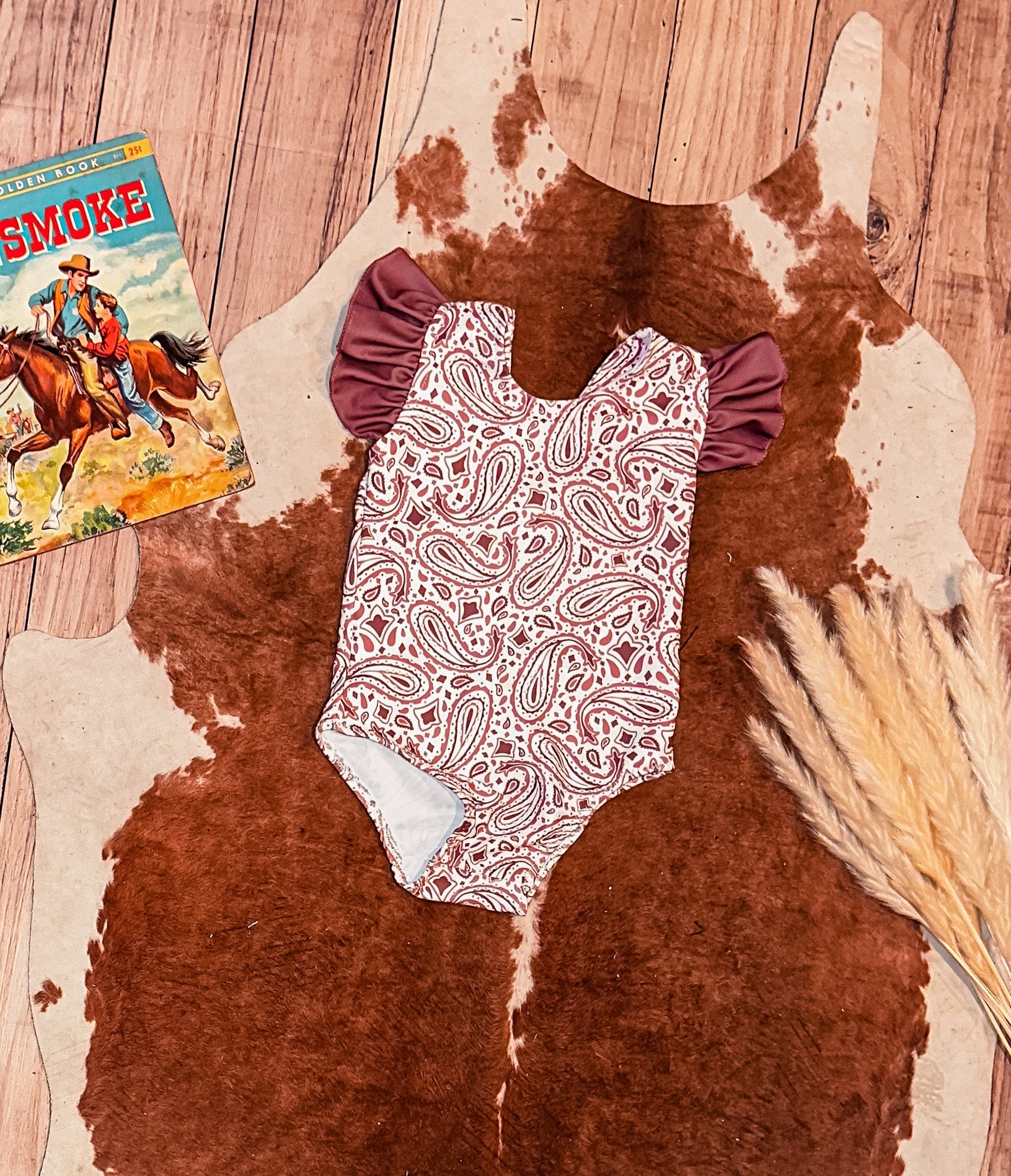 The cutest one piece for your little girl! Lined in the front, with ruffle straps makes this the cutest western bathing suits all little cowgirls need.