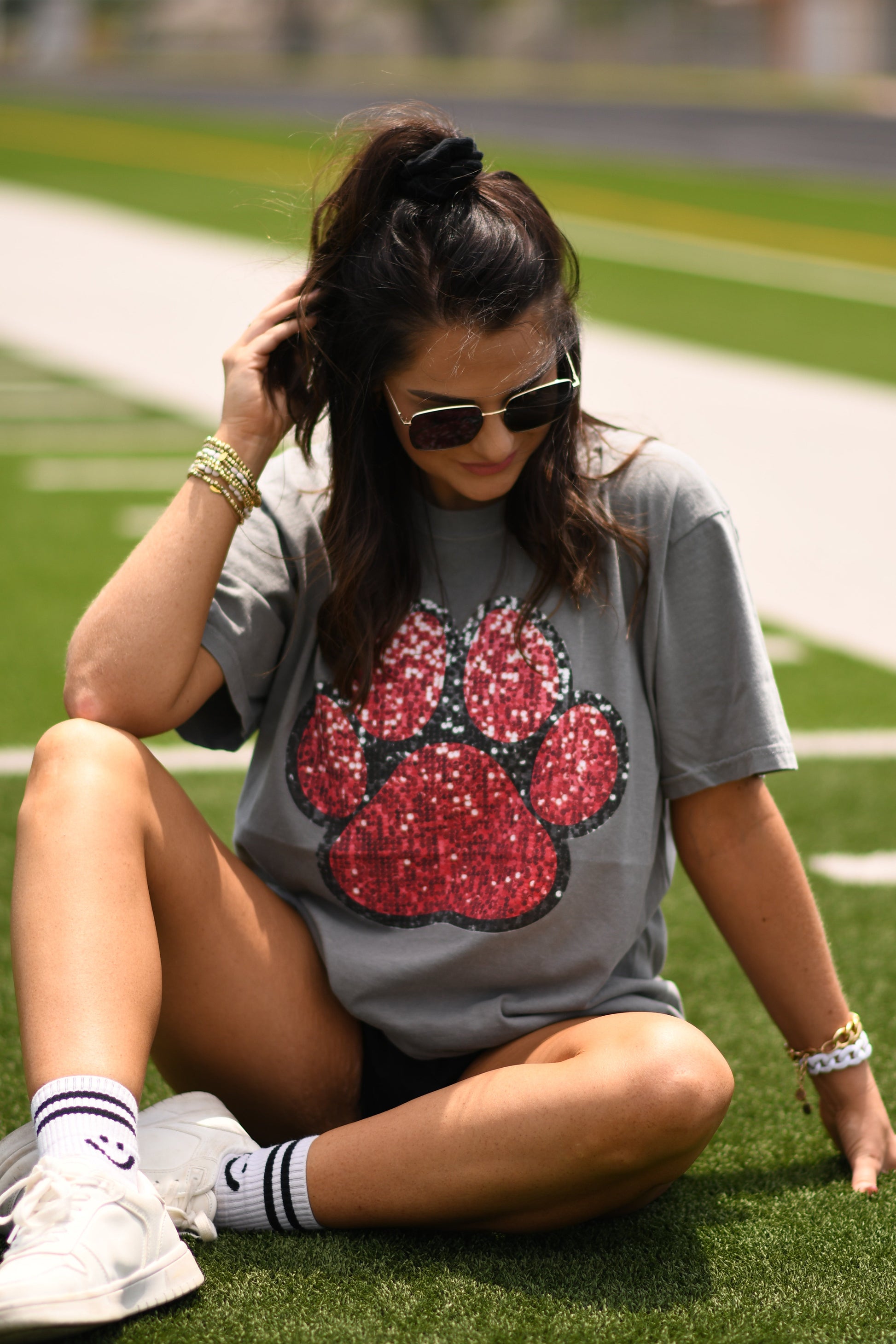 Red & Black Faux Glitter Paw Print Tee