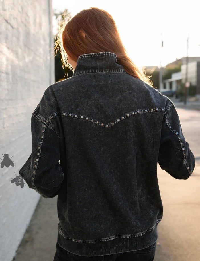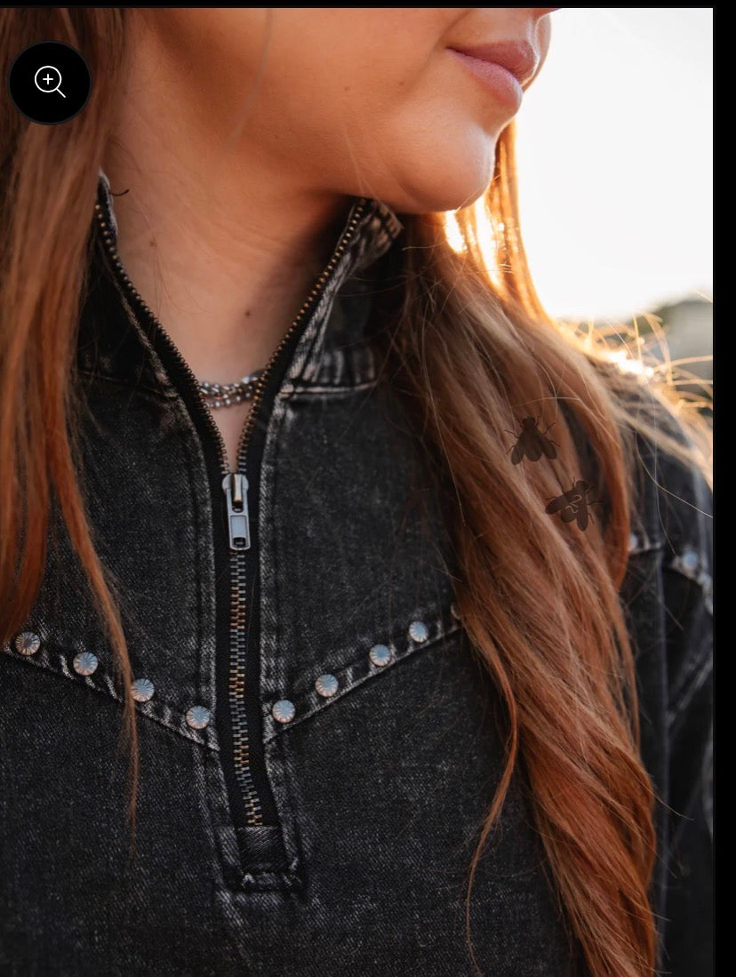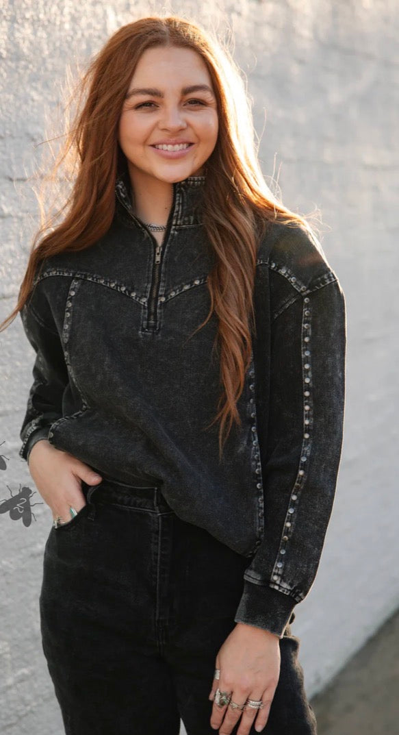 the details in this pullover is AHHMAZING it's giving subtle western elements with some concho studs.