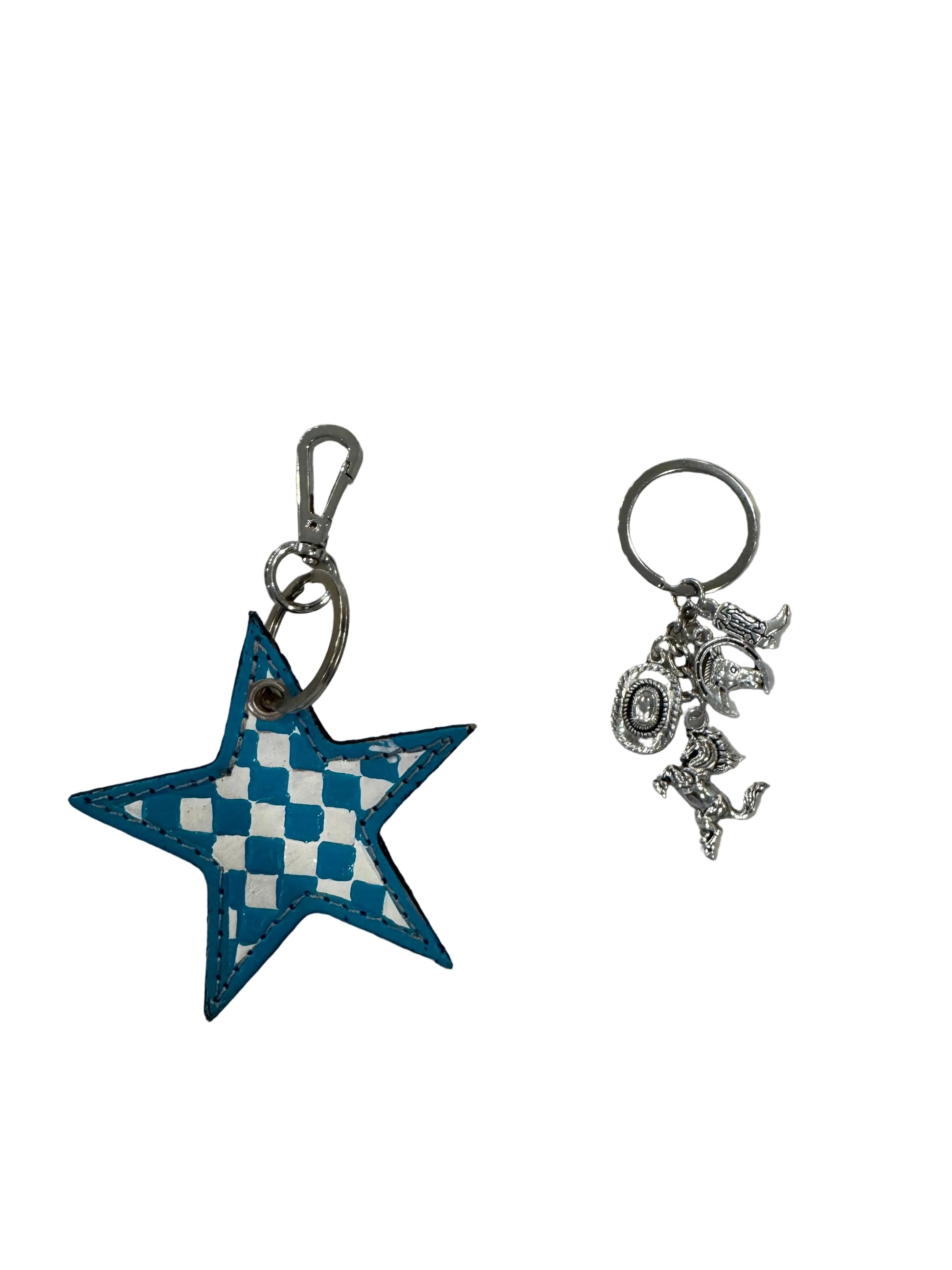 Please note: The gold steer accessory shown will be replaced with a star checkered leather accessory and a silver charm accessory. See photos.