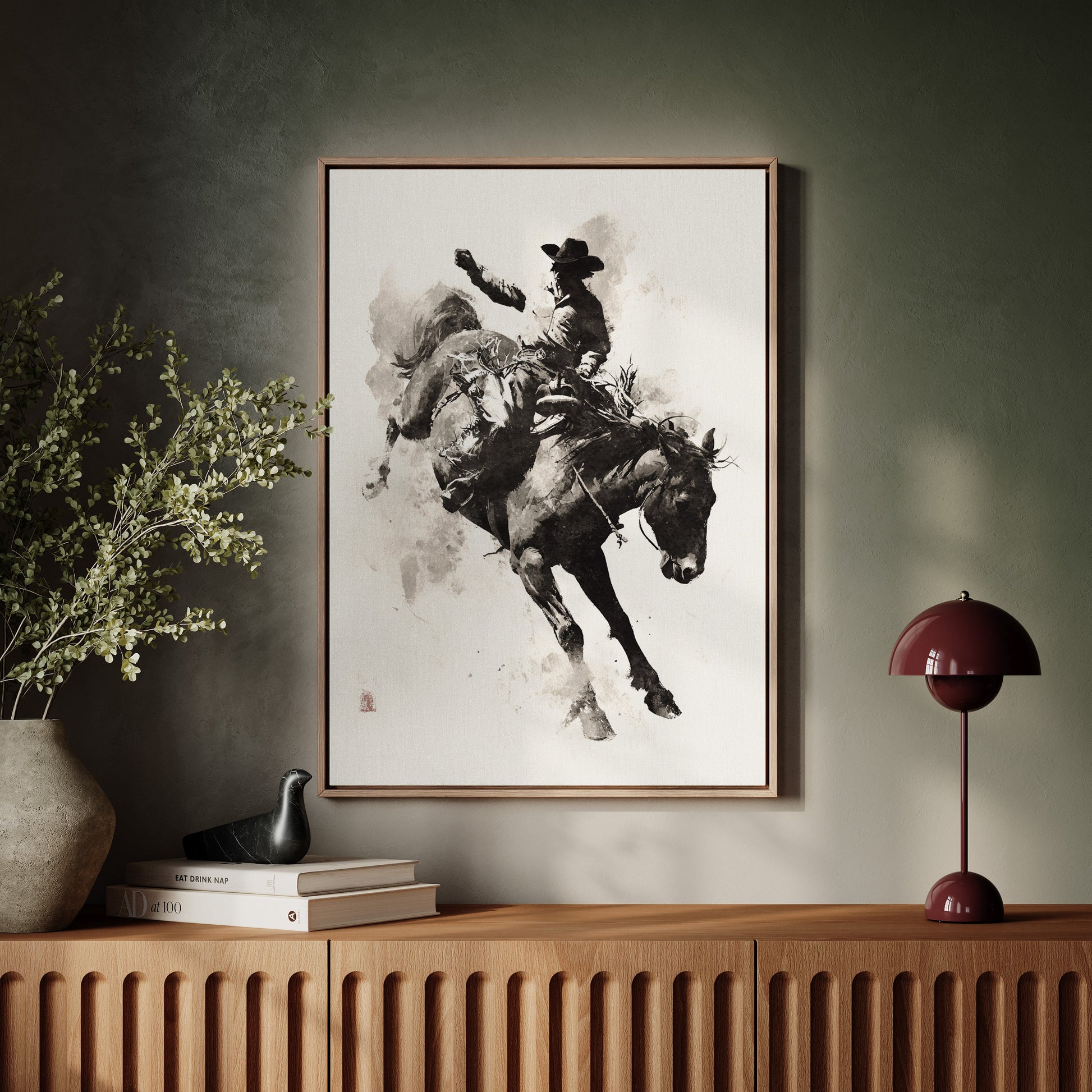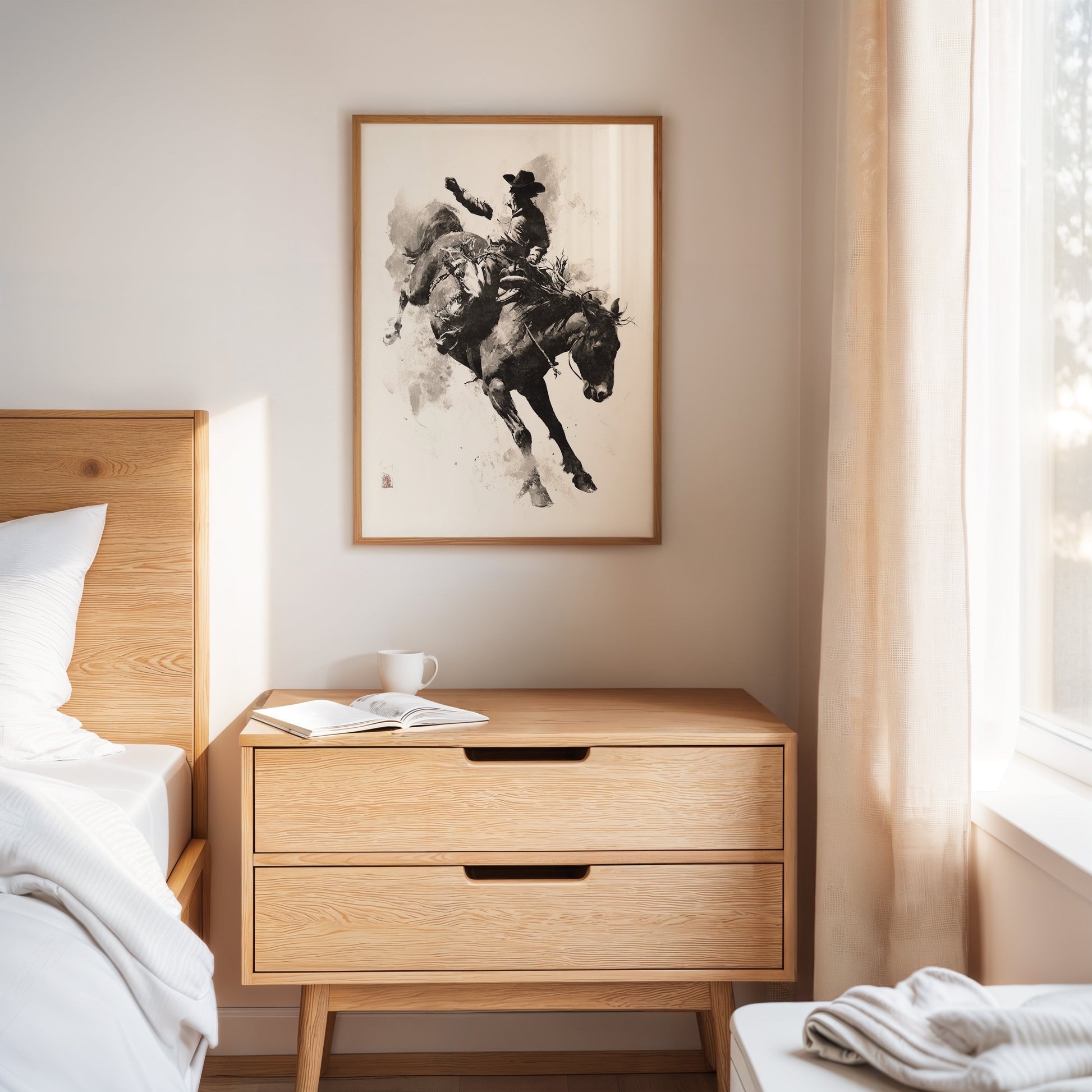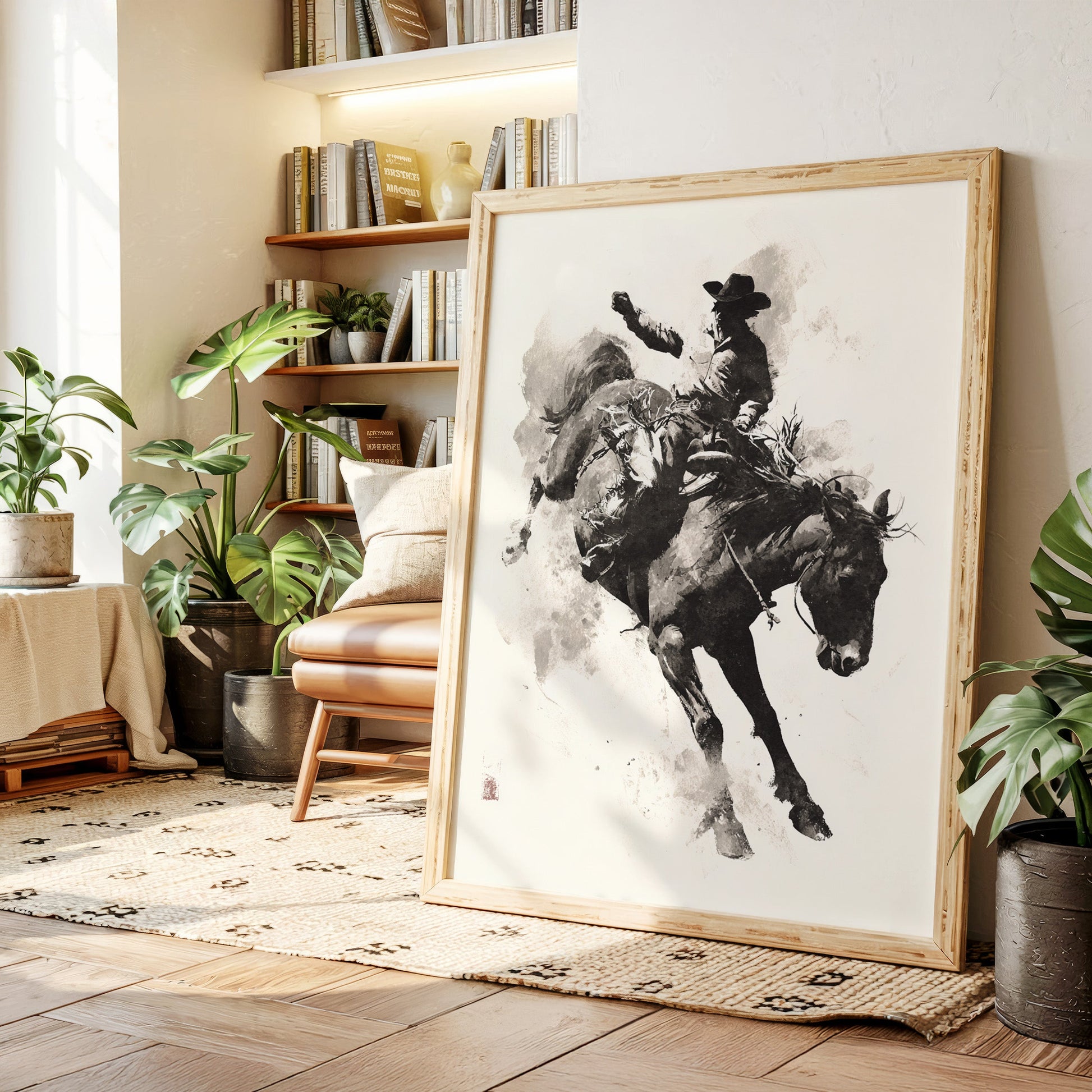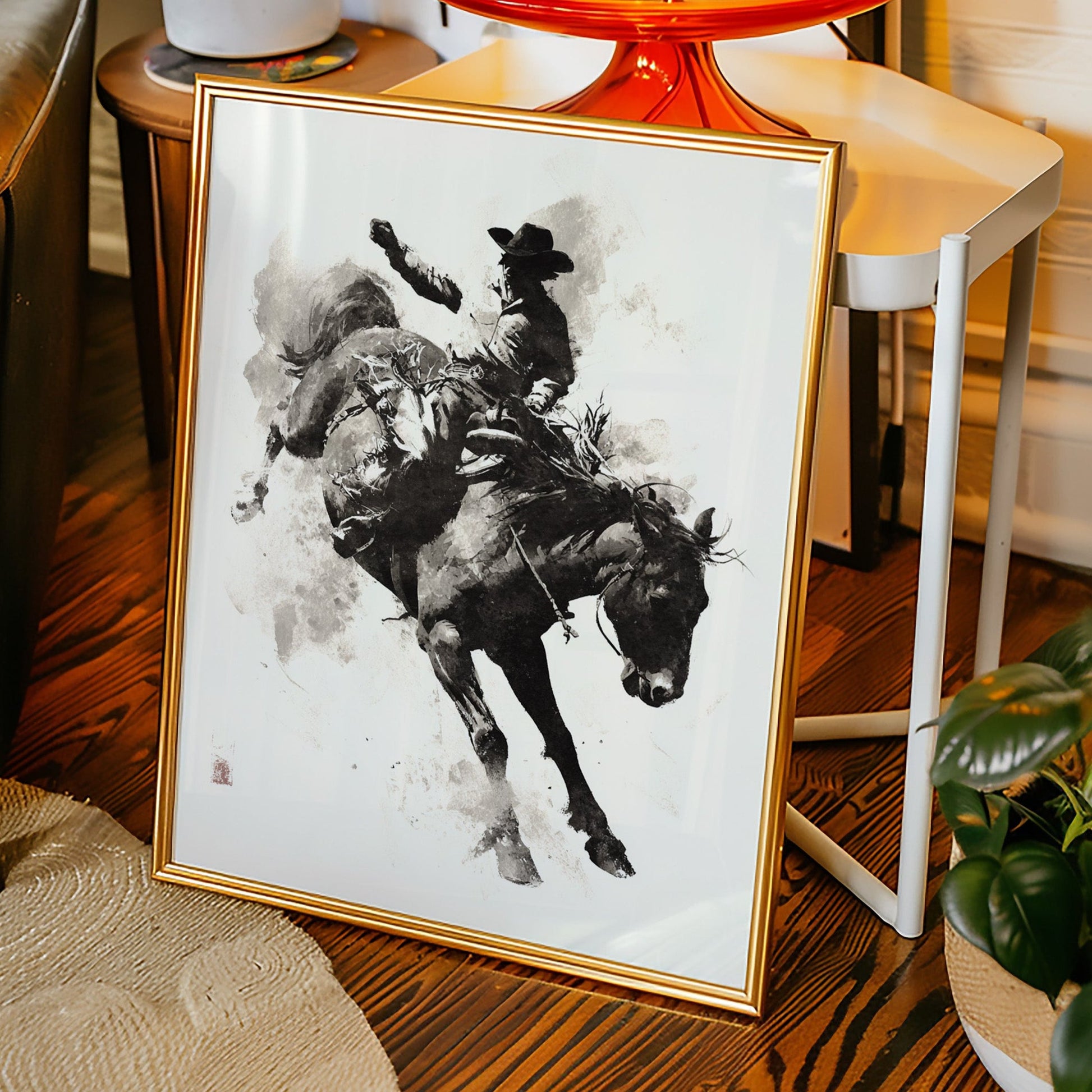 Perfect for bringing sophisticated western energy to living rooms, adding artistic character to home offices, or creating dynamic focal points in any space that appreciates the intersection of fine art and western heritage. This piece speaks to art collectors, western enthusiasts, and anyone who believes that the most memorable art captures the soul of its subject rather than just its appearance.